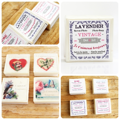 Did you miss the release of our special edition soaps last week? 'Je t'aimerai toujours' vintage photo-soaps just in time for Valentine's Day. Four scents are available: Rose, Bergamot, Lilac and Lavender. The soaps are 90 g/3.17 oz and have a pretty vintage-style label. And they're only $6! What do you think?