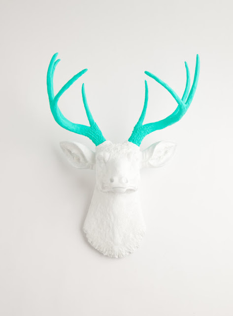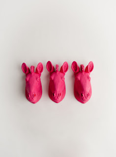 Then, there's a whole bunch or crazy goodness from White Faux Taxidermy, out of Utah, who make cool resin wall pieces that I can't help but be drawn to. I mean, how good would these pink zebras looks on the pink striped studio wall? I also like the elephant and the turquoise and white deer.