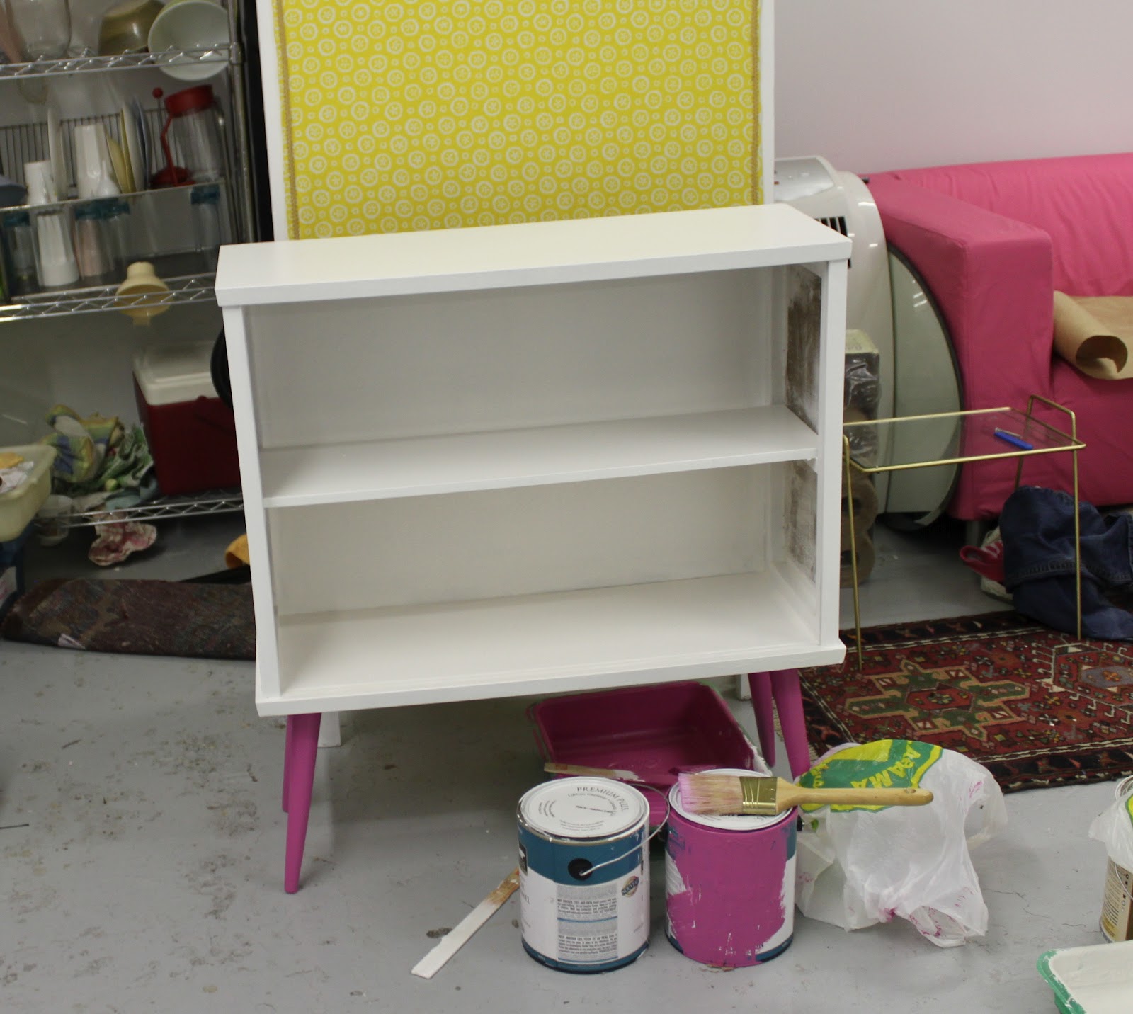 We also painted my desk and various other salvaged furniture, most of it white. This really freshened up and lightened the impact of the furniture on the space as a whole.