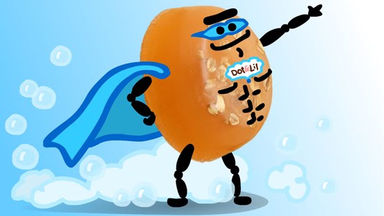 Once a month I'm going to be asking people who use handcrafted bath and body products to design their own, superhero handcrafted product. They will answer two questions and their answers just might inspire a Dot & Lil product, tell a funny story or, who knows, change the world. This month we have @LittleAnimation from The Animated Woman and @MathieuPipe. And as of today and thanks to the incredible drawing talents of @LittleAnimation, we have our superhero series mascot, The SoaperHero! Just look at his Oatmeal-ey, Soap-ey goodness and how handsome he looks in that cape! Now for the questions.