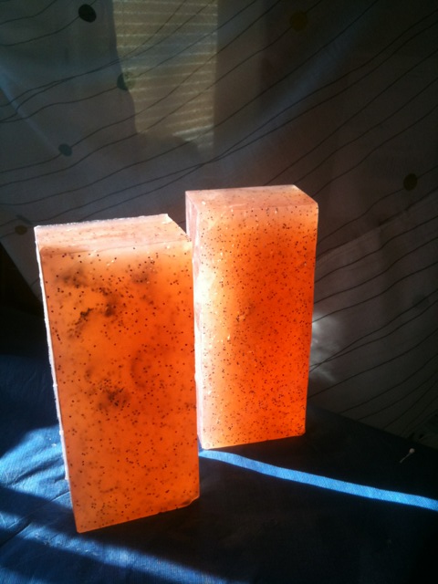 And here are some loaves of Grapefruit & Bergamot soap before being cut into bars. I love seeing these in sunshine! They're just too pretty with light shining through them.