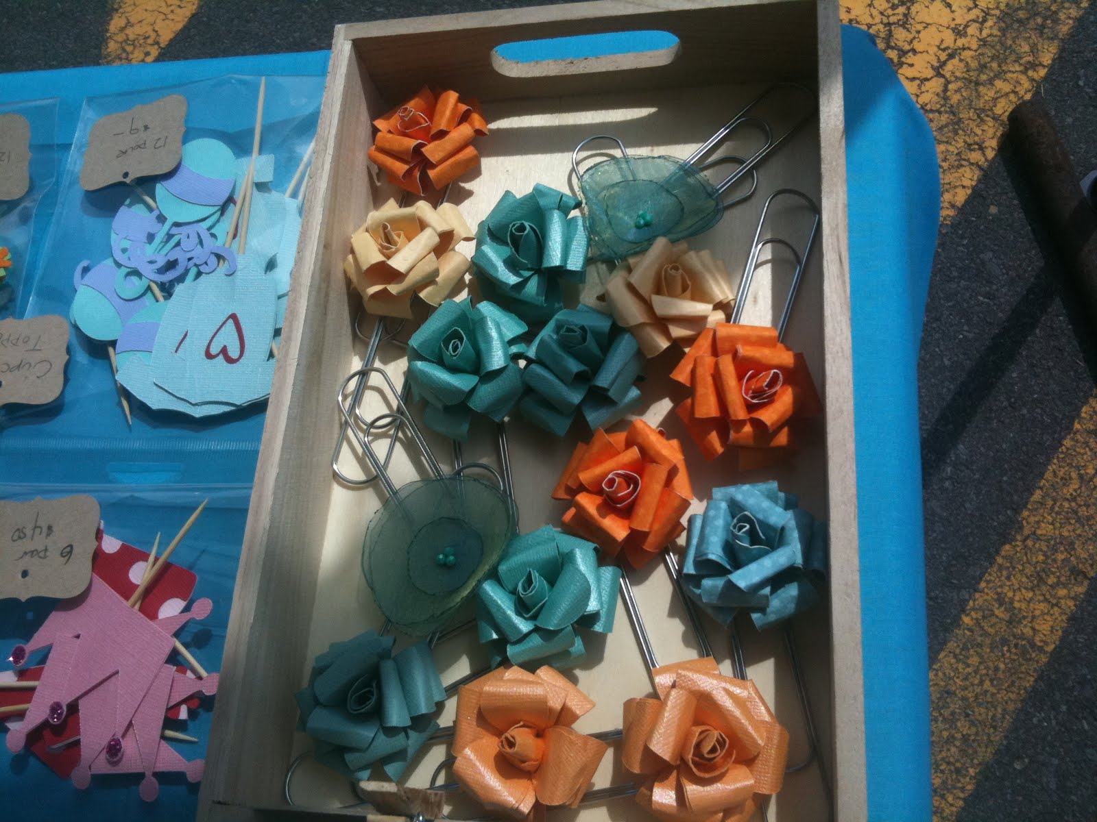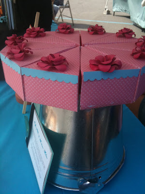 And on my right were some very well-executed and creative paper goods by Samantha Star from Paper Candy. I got distracted but I meant to pick up some cupcake paper clips, because my life just isn't complete without them. And I'd love to have her create some custom paper projects for Dot & Lil one of these days! The paper cake, pictured below, gave me some soap packaging ideas that the wheels are still turning on in my head. You can also follow her on Twitter, @papercandyca. Isn't that banner with the clear panels great? Want.