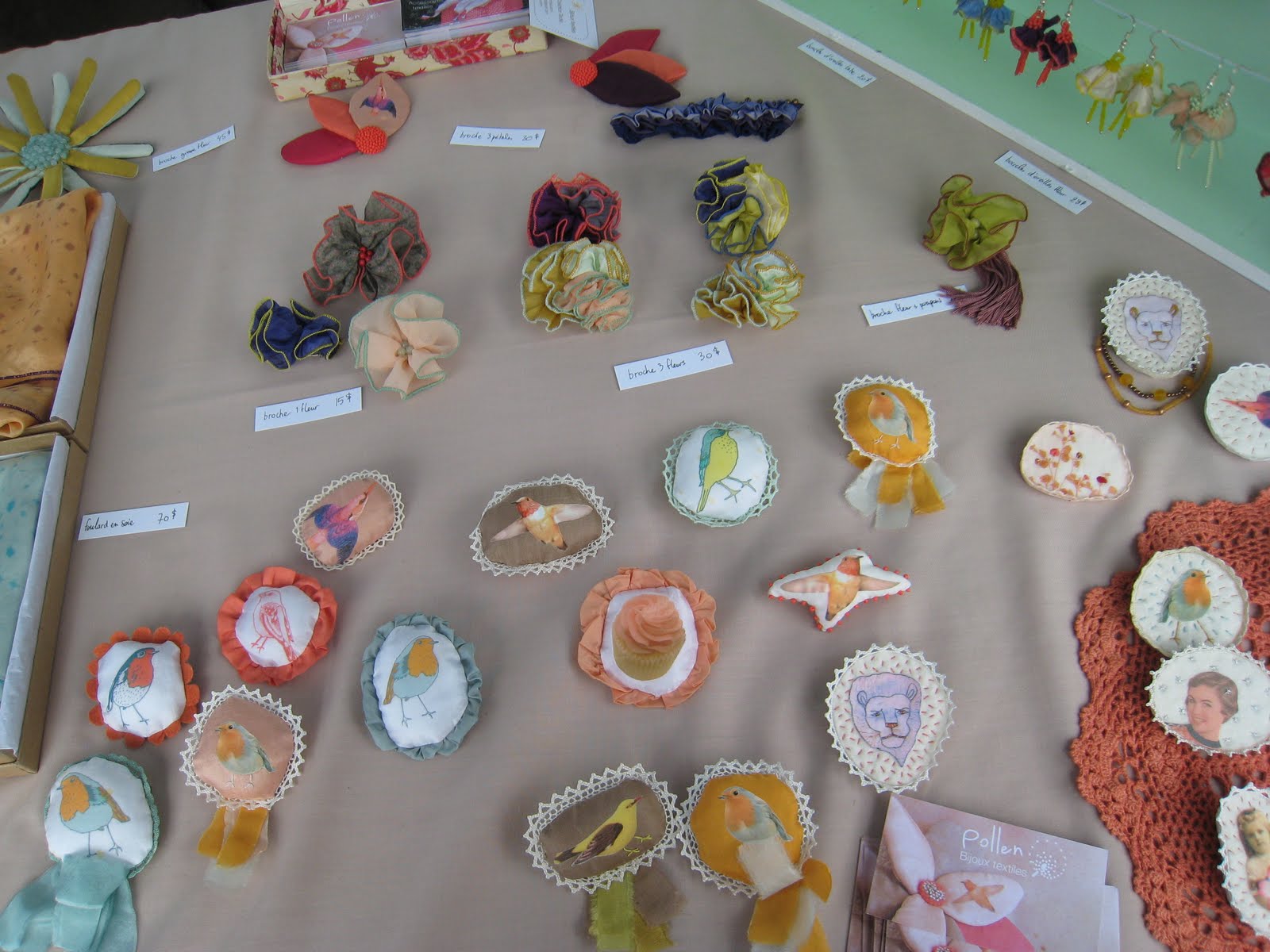 And these beautiful textiles and textile jewelery from Pollen. You can also read Julie André's blog here, and see her pics from marché la récré.